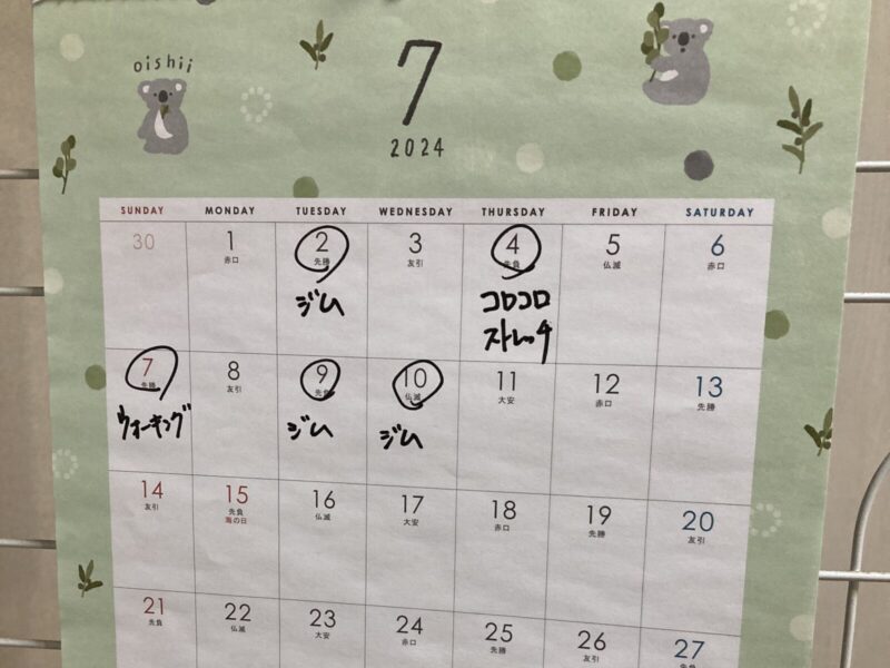 わたし(いのうえ)はカレンダーに◯印を付けています。