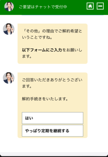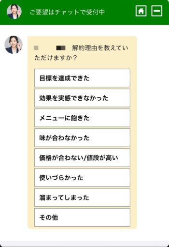 あとはAIチャットボットの指示に従って会員情報を記入すると、利用しているコース一覧が表されます。そこから解約したいコースを選択し、解約手続きを進めていけば解約できます。