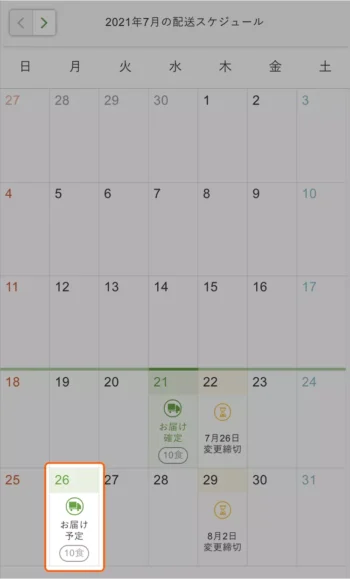 - カレンダーからスキップしたい「お届け予定日」をタップ
