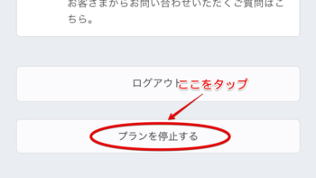 - ログアウトボタンの下にある「プランを停止する」をタップ