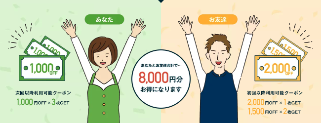 紹介者と紹介された方がそれぞれ異なる割引を受けられるため、双方にとってメリットがあります。