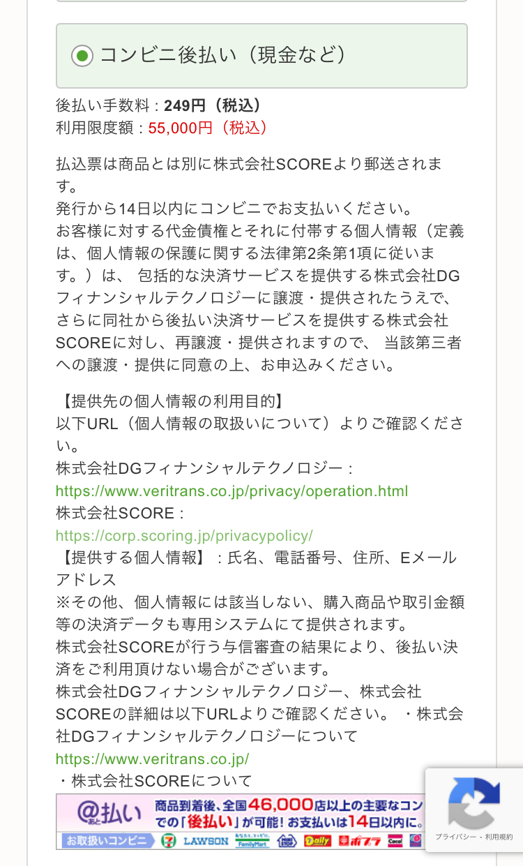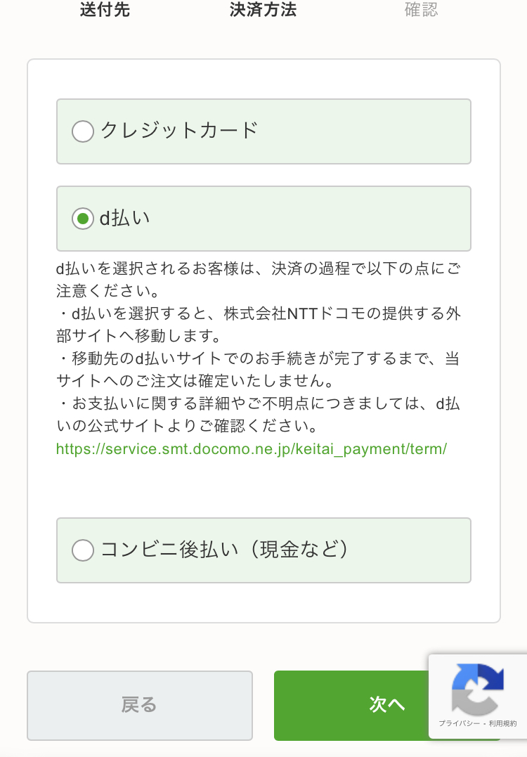 後払い決済の注意事項及び個人情報の取扱いについてご確認・ご同意の上、「次へ」を選択してください。