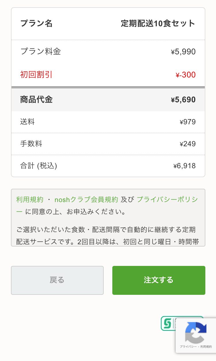 配送メニュー・料金を確認して、利用規約に同意の上、最後に「注文する」を選択すると注文が完了します!
