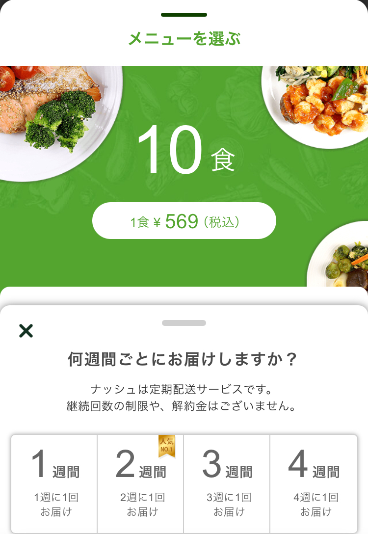 配送間隔はnosh(ナッシュ)の利用頻度を考えて決めてください。毎日のランチに利用するのか?平日のみなのか?などですね。
