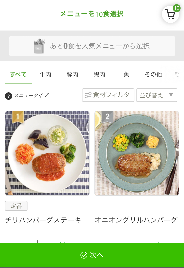 10食2週間ごとだと平日5食の計算です。平日の1食をnosh(ナッシュ)に置き換えると考えたら最適ではないでしょうか。