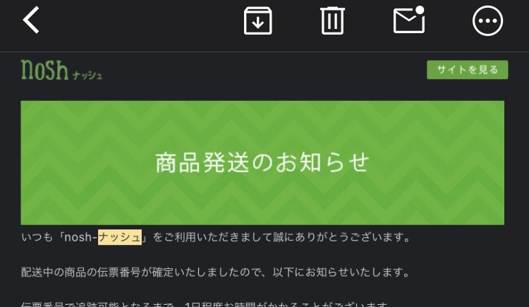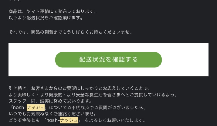商品が発送されるとnosh(ナッシュ)から商品発送のメールが届きます。