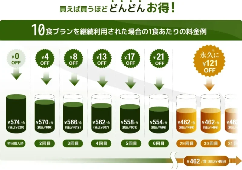 1食あたりの料金は10食プランが安いです。