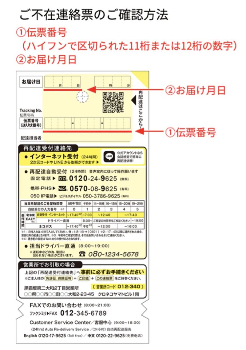 - 不在連絡票をもとに、再配達依頼がかけられます。