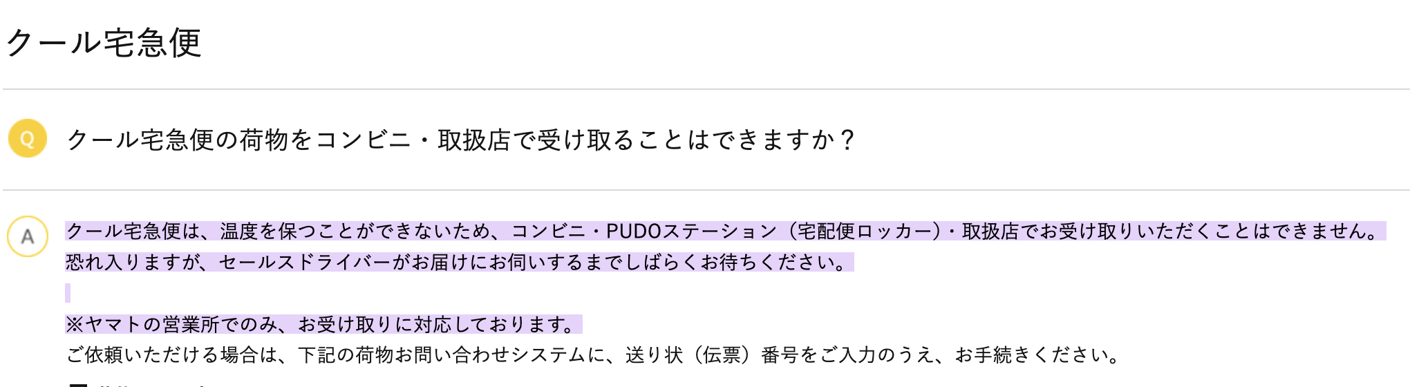 また、上記の方法で連絡した際に、ヤマト営業所で受け取ることも可能です。