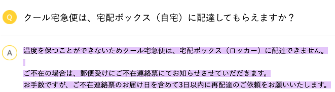 これはnosh(ナッシュ)が置き配や宅配ボックスでの受け取りができないことと同じ理由です。