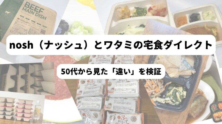 この記事ではnosh(ナッシュ)、ワタミの宅食ダイレクトの違いを比較して、50代独身一人暮らしのわたしが選んだときのポイントなどを紹介していきます。