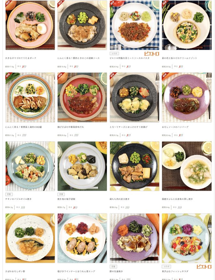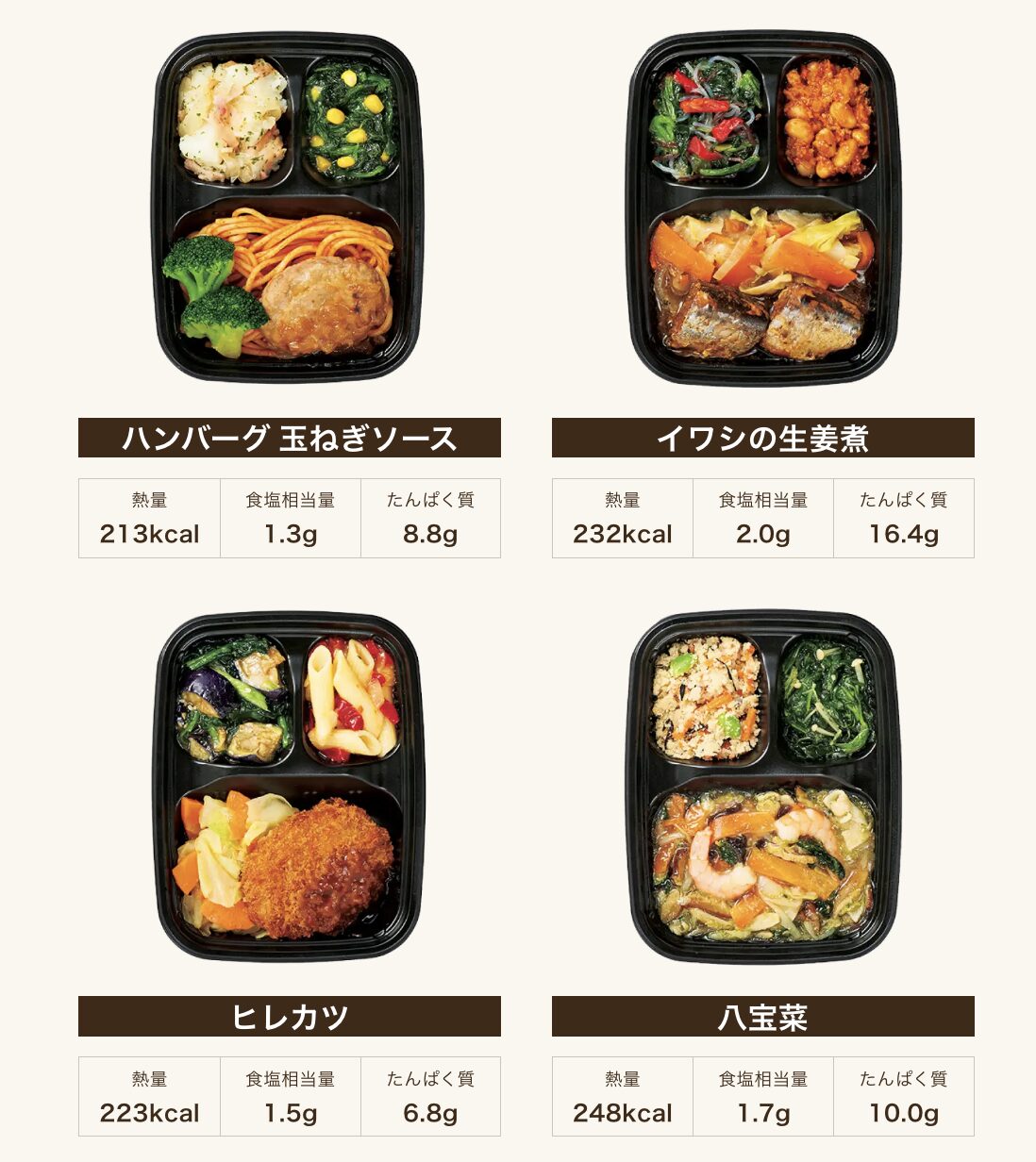 また、「いつでも五菜」「いつでも三菜」「いつでも二菜」「介護食」「ロカボリック」「アラカルト」という豊富なプランがあります。
